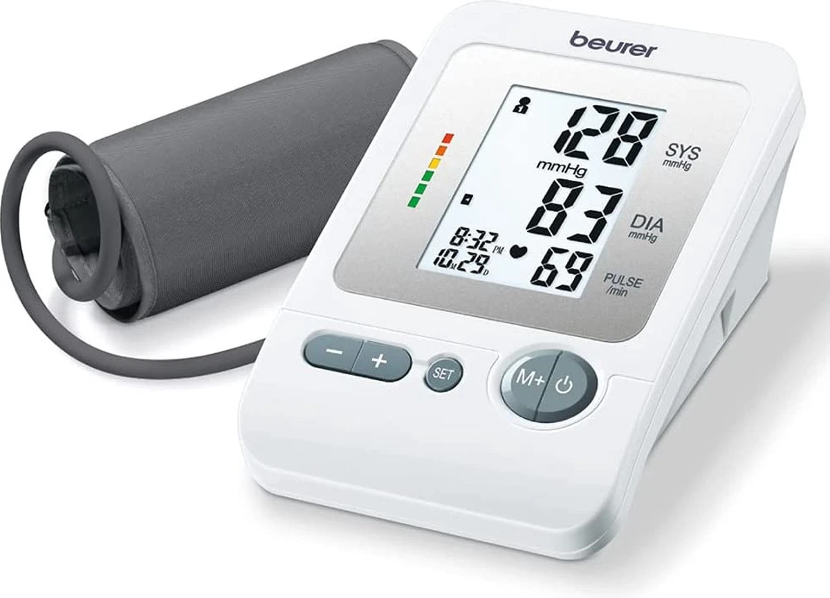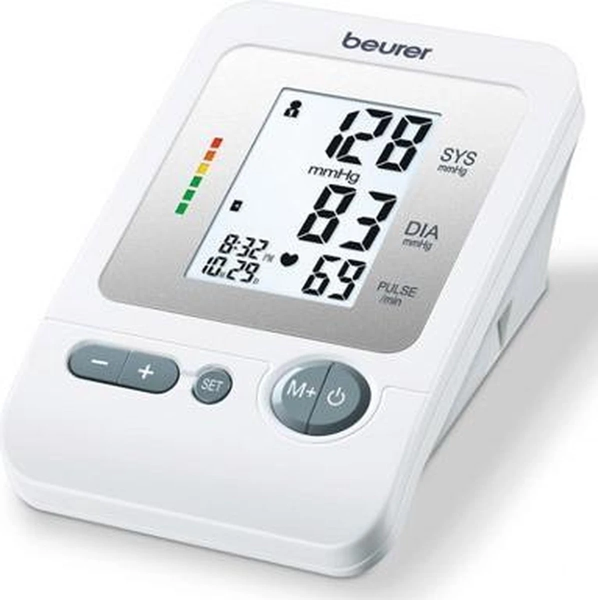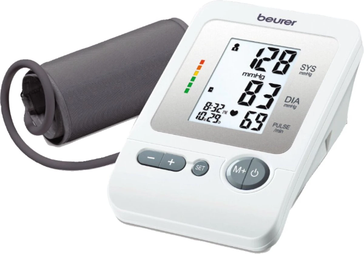Met de Beurer BM26 volautomatische bloeddrukmeter meet je eenvoudig de bloeddruk en hartslag via de bovenarm. Je bevestigt de royale manchet (22 – 35cm) rond uw bovenarm en start de meting eenvoudig met slechts één druk op de knop.