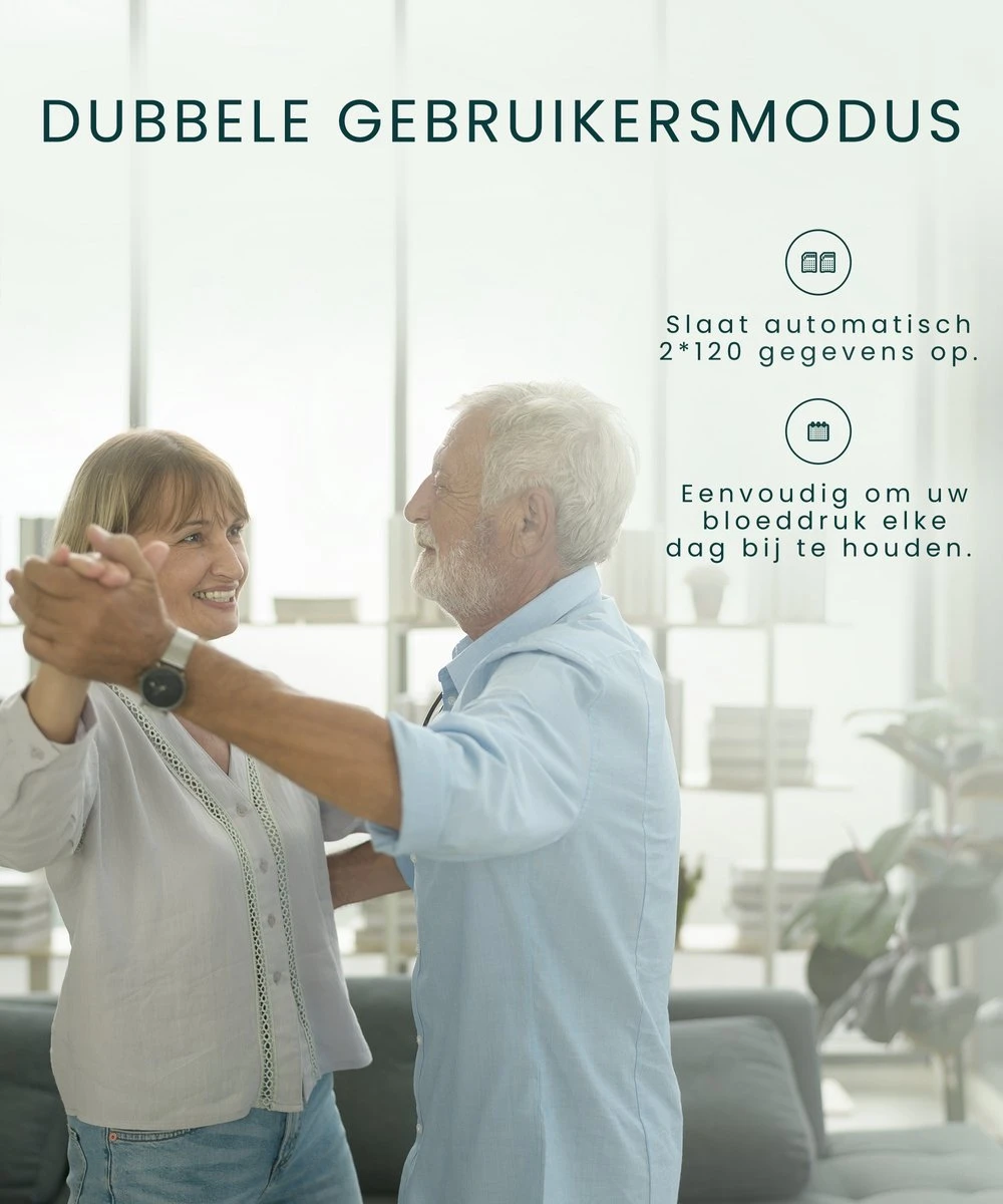- U kunt deze gebruiken voor twee personen, waarbij u per persoon 120 metingen kunt opslaan.