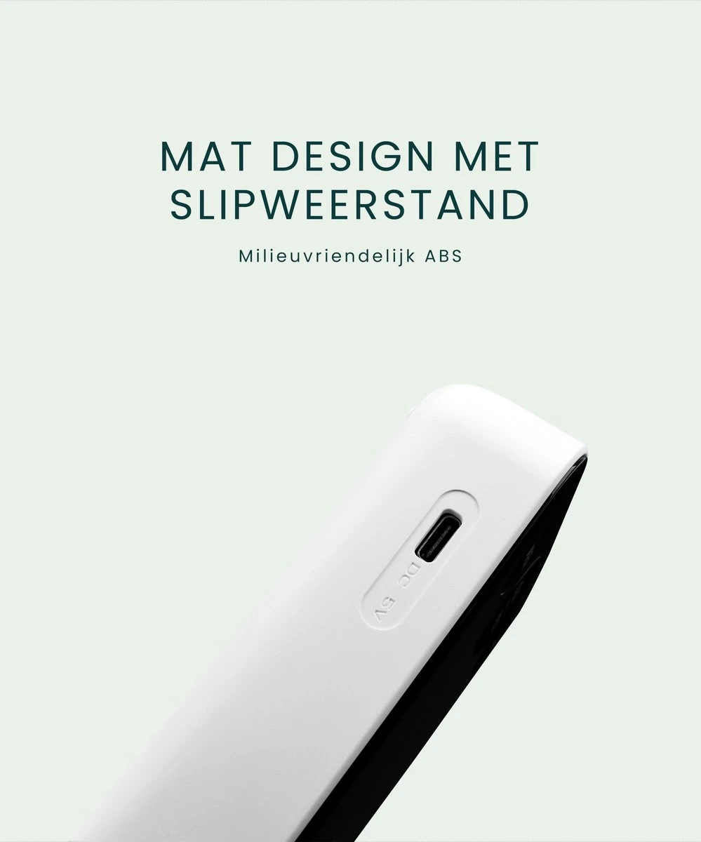 - Batterijen aanwezig, maar je kan ook aansluiten aan een USB C oplaadkabel