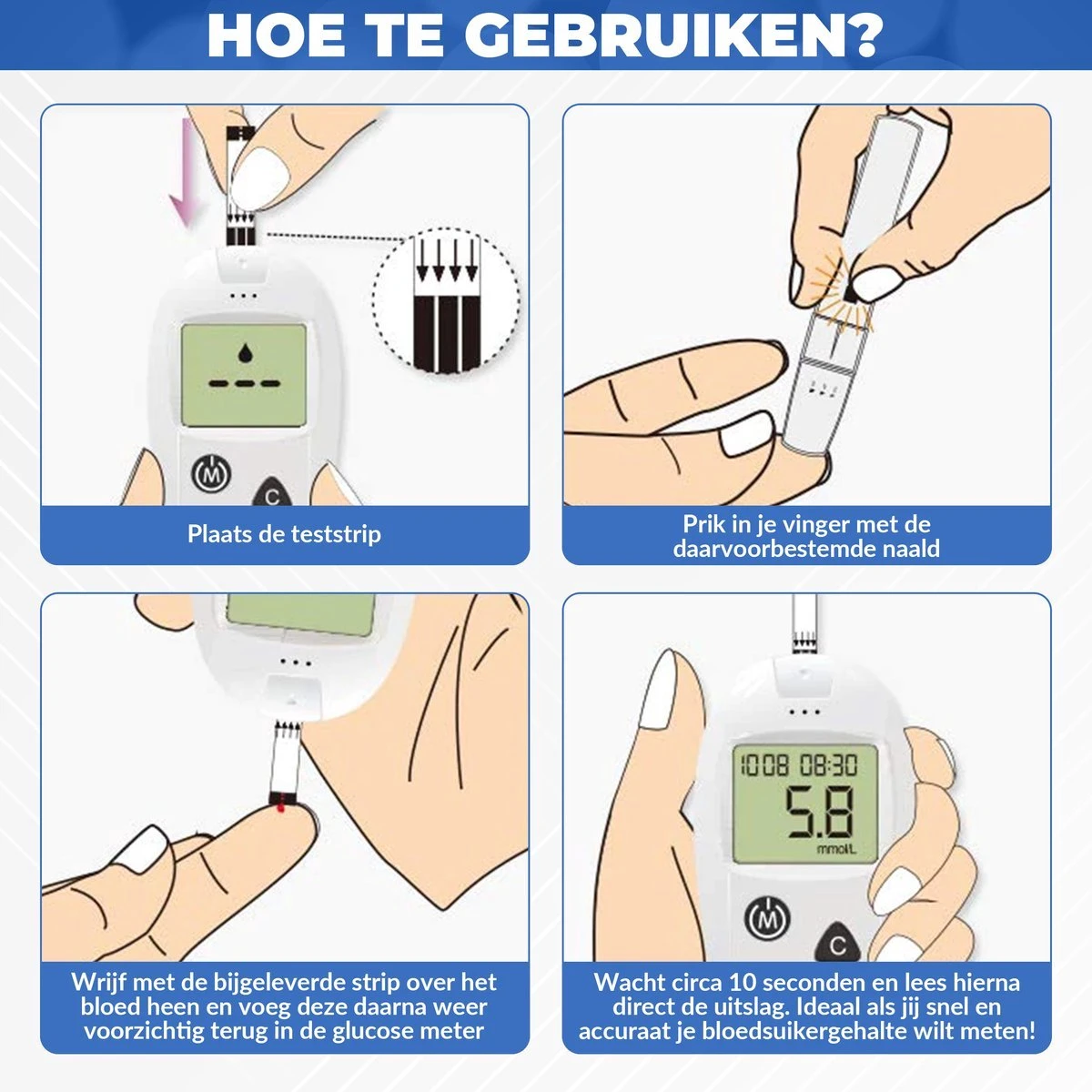 ✅ Super snel – De bloedglucosemeter test u glucosegehalte in slechts 10 seconden.