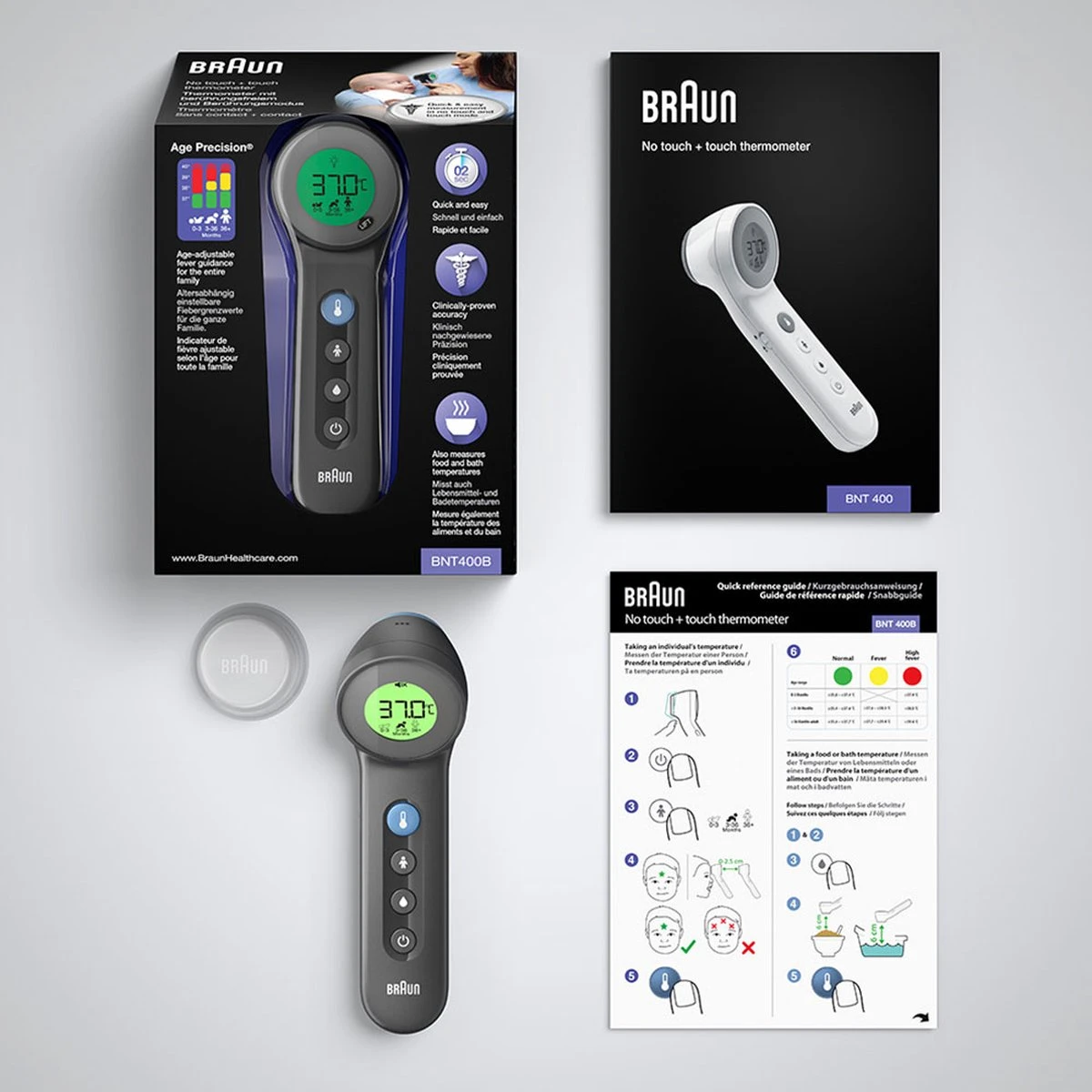 | Verpakkingsinhoud | 1x Braun ThermoScan BNT400B 1x Beschermkapje 2x AAA alkaline batterij |