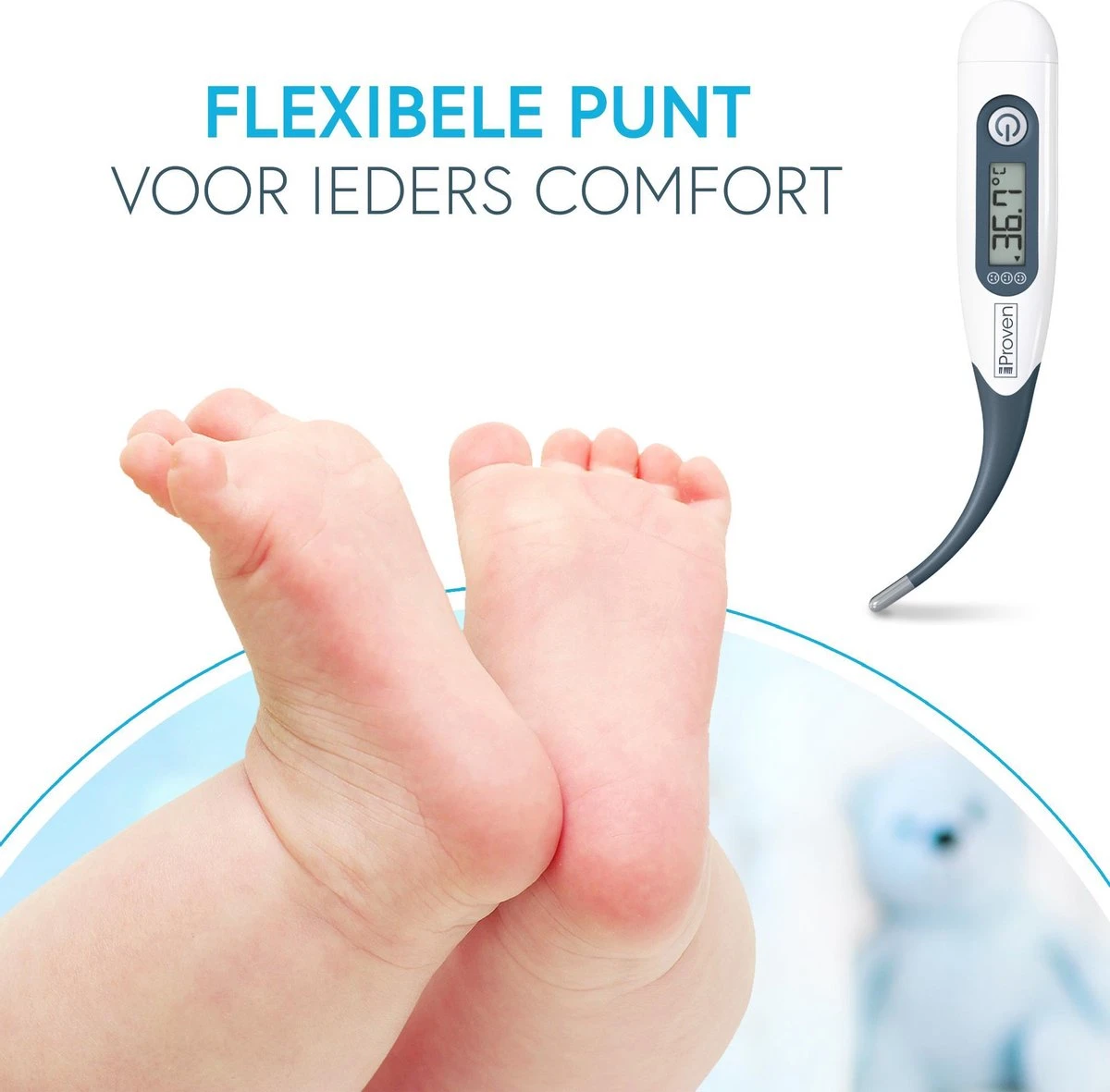 - Digitale thermometer met flexibele tip voor een comfortabele meting.