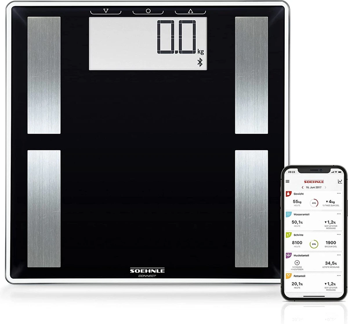 Als je bewust gezonder leven wilt: lichaamsanalyse-weegschaal Shape Sense Connect 500 van Soehnle. Deze weegschaal met BIA-technologie geeft je de exacte gegevens over je lichamelijke conditie, zoals percentage lichaamsvet, water en spiermassa, evenals je BMI (Body-Mass-Index).