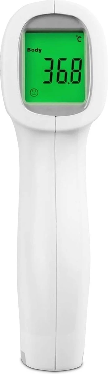 Houd de thermometer voor het voorhoofd vlak boven de wenkbrauw en beweeg de thermometer tijdens het meten langzaam heen en weer. Aan het einde van de meting klinkt een lange pieptoon. Dit duurt meestal tussen de 5 – 8 seconden. Is er geen koorts, dan licht het scherm groen op. Wanneer er sprake is van koorts, dus bij een temperatuur boven de 37.5°C, zal het scherm rood oplichten en een koortsalarm klinken.