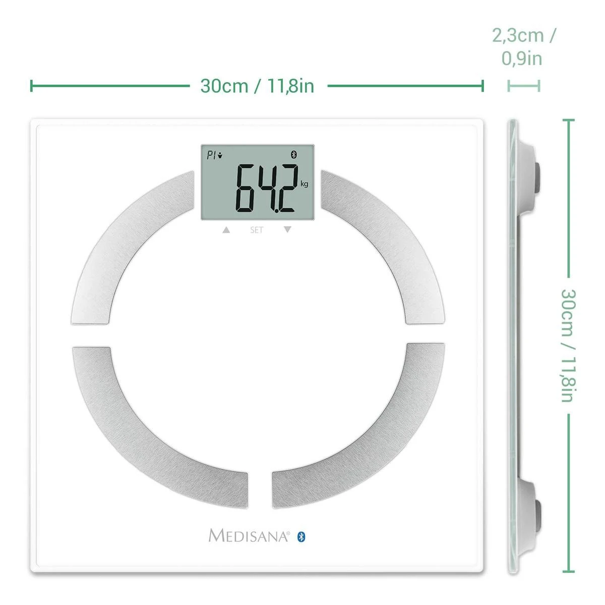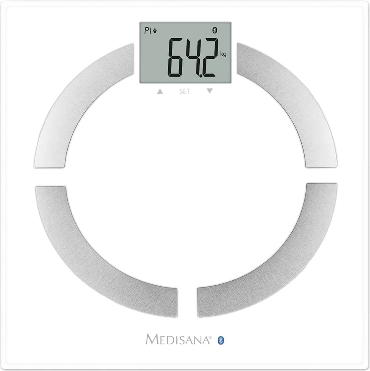 Op zoek naar een lichaamsanalyse weegschaal die meer meet dan alleen je geiwicht en bmi? Dan is de Medisana BS444 Connect Lichaamsanalyseweegschaal met app iets wat je zoekt! Naast lichaamsgewicht en BMI meet de BS 444 Connect ook je vetpercentage, vochtpercentage, en je spier- en botmassa. Samen met de BMI-berekening en vaststelling van de dagelijkse caloriebehoefte helpt deze Lichaamsanalyseweegschaal met app je naar een efficiënter gezondheidsschema.