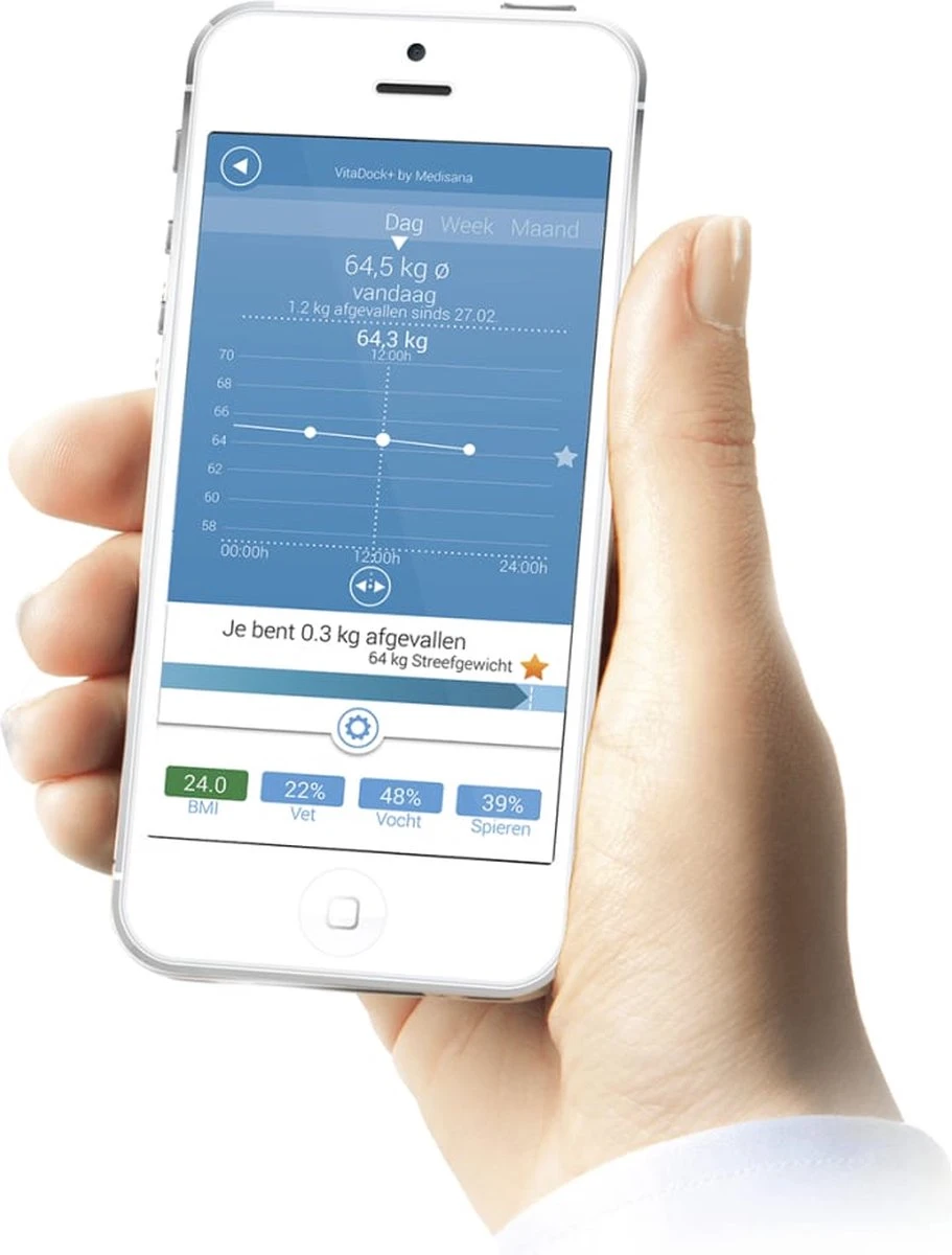 - Koppelbaar met VitaDock+ app waar je meetresultaten kunt terugvinden en zo je doelen kunt managen.