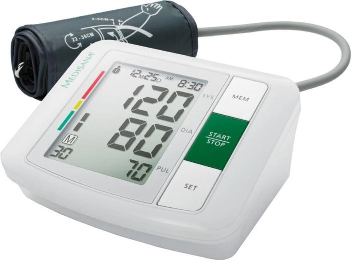 Met deze volautomatische bovenarm bloeddrukmeter BU 510 van Medisana meet u zeer betrouwbaar en nauwkeurig uw bloeddruk. U bevestigt de manchet rond uw bovenarm en start de meting eenvoudig met slechts één druk op de knop.