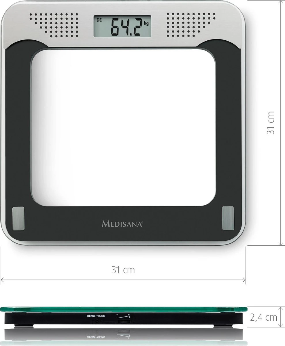 Deze praktische Medisana PS416 weegschaal met exclusief design is gemaakt van 6 mm dik veiligheidsglas met afgeronde hoeken. Ook aflezen van het gewicht is gemakkelijk dankzij het LCD-display. De vier sensoren zorgen daarnaast voor een nauwkeurig meetresultaat.