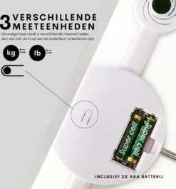 Keuze tussen KG (Kilogram) en LBS (Pond) zodat je met één druk op de knop eenvoudig kunt schakelen naar je gewenste meeteenheid
