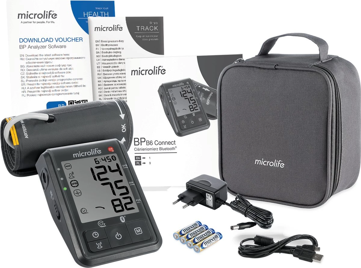 De Microlife BP B6 Connect is een waardevolle klinisch gevalideerde bloeddrukmeter voor het meten van de bloeddruk. Deze geavanceerde monitor biedt meer dan wat dan ook: het detecteert atriumfibrilleren met hoge nauwkeurigheid tijdens een bloeddrukmeting, die al met succes klinisch is getest op meer dan 10.000 patiënten en is gevalideerd voor het gebruik bij kinderen (12+), patiënten met diabetes, nierziekte, zwangerschap / pre-eclampsie en obesitas..