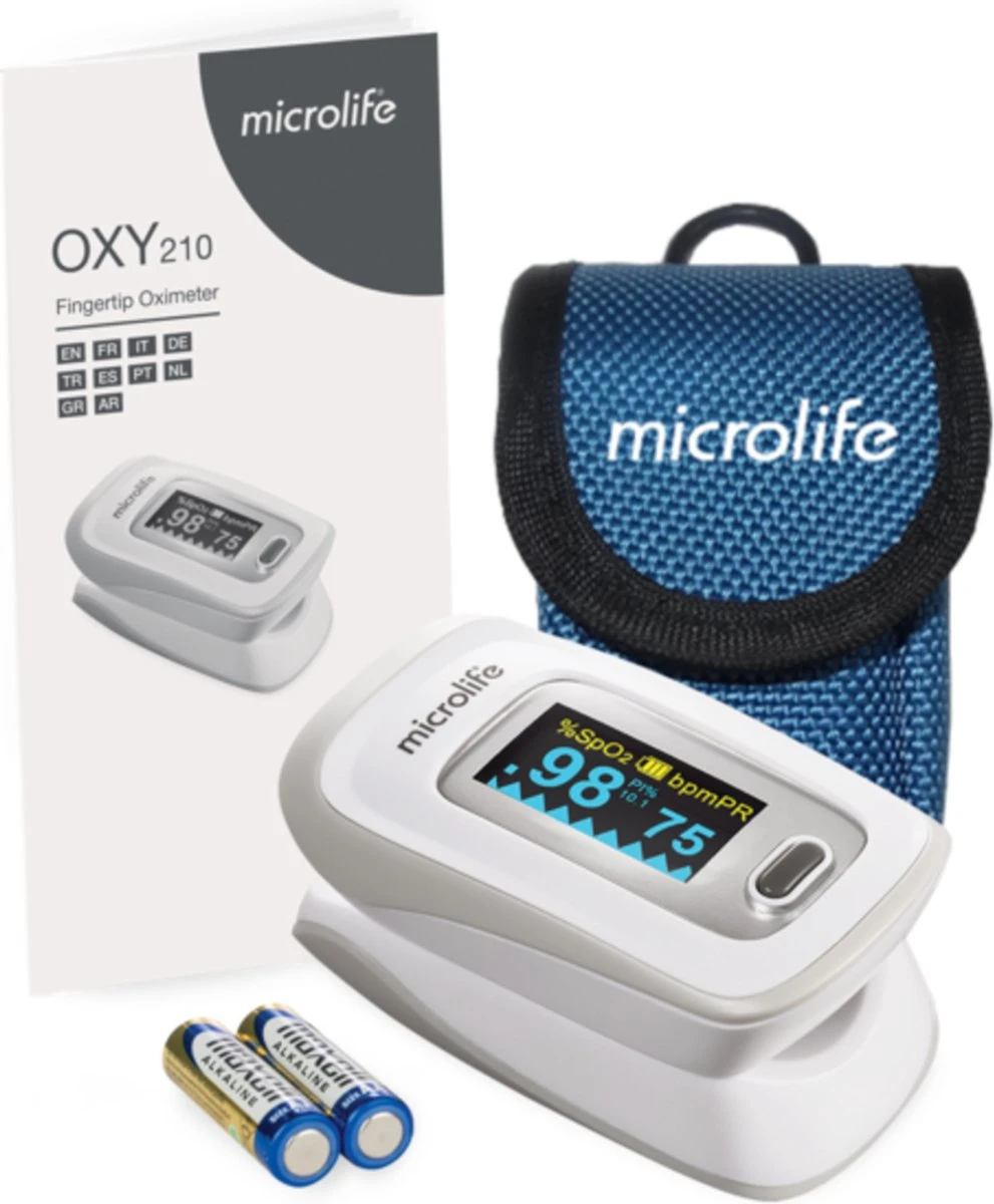 | Verpakkingsinhoud | – Microlife OXY 210 saturatiemeter – 2 AAA-batterijen – Draagkoord – Opbergtasje – Gebruiksaanwijzing |