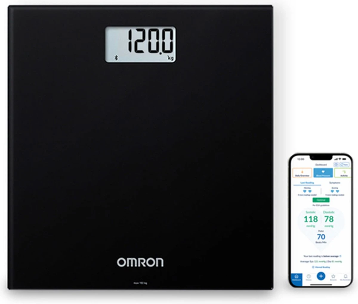 Met OMRON HN300T stap je op de schaal, het apparaat legt dan snel en nauwkeurig je lichaamsgewicht vast. Het resultaat wordt vervolgens automatisch opgeslagen in de OMRON connect-app. Als je de weegschaal combineert met de bloeddrukmeter van OMRON, zie je de impact van je gewichtsdoelen op je bloeddruk. De nauwkeurige metingen duren maar een seconde. Tik met je voet op de plaat en weeg jezelf.