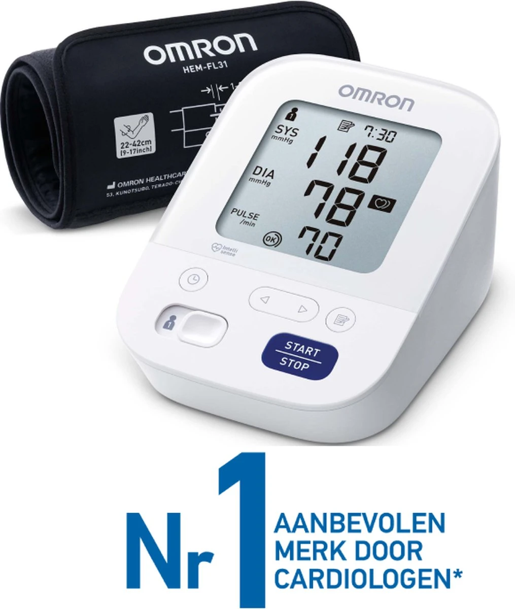 De OMRON X3 Comfort is een klinisch gevalideerde bloeddrukmeter waarmee je thuis eenvoudig je hypertensie kunt controleren. Gemaakt door OMRON, Europa’s meest door cardiologen aanbevolen merk bloeddrukmeters voor thuis. Daarnaast zorgt de X3 Comfort voor een eenvoudige manier om nauwkeurige resultaten te krijgen: de unieke Intelli Wrap-manchet van OMRON plaats je moeiteloos op je bovenarm en geeft nauwkeurige bloeddrukwaarden in elke positie rond de bovenarm