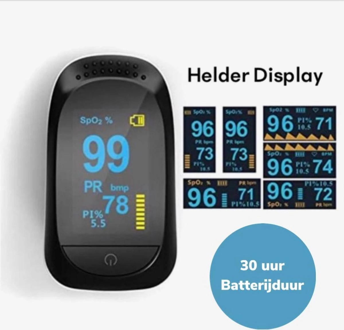 Ook meet een saturatiemeter je hartslag, wat je veel over de gezondheid van je hart vertelt. Een saturatiemeter is compact en gemakkelijk om bij je te dragen. Zodra jij je minder goed voelt, voer je een saturatiemeting uit om te zien of het zuurstofgehalte in je bloed nog op peil is en of je hartslag goed is.