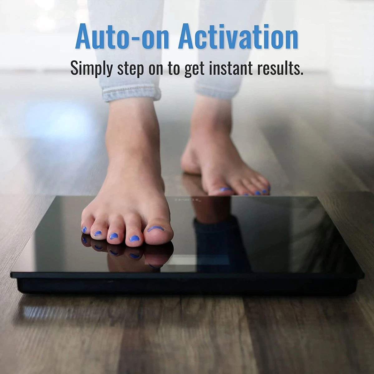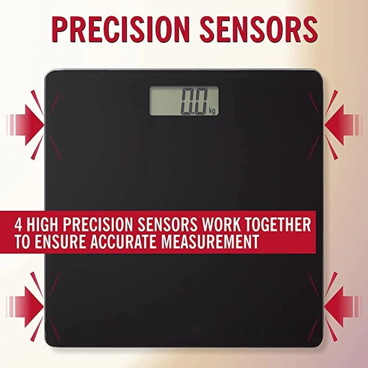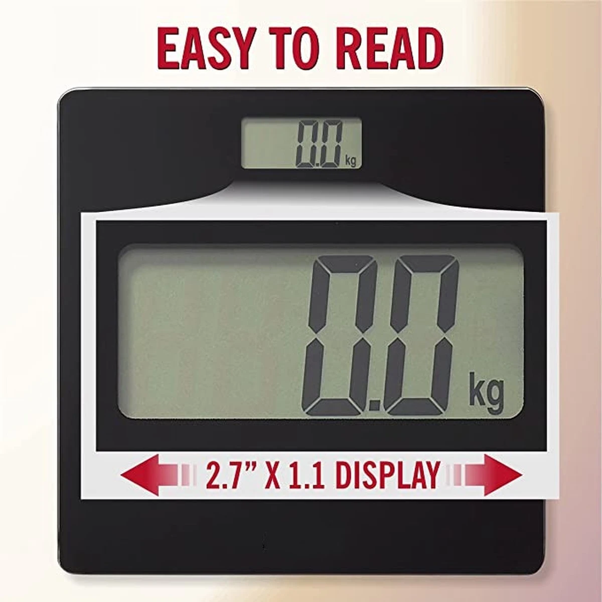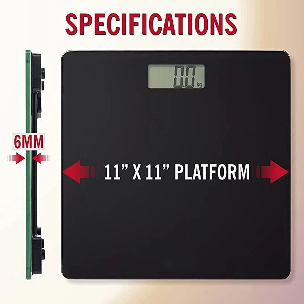 Een klassiek vierkant zwart platform van 30 cm doet het goed in elke badkamer en is een lust voor het oog en de perfecte maat. Metingen kunnen met gemak worden afgelezen op het 8.2″ x 4″cm LCD-scherm dat gewichten weergeeft in ponden, kilogrammen of stenen. Met een capaciteit van 180 kilo kunt u het meeste uit deze weegschaal halen, terwijl de metingen tot op 0,1 kilo nauwkeurig worden weergegeven.