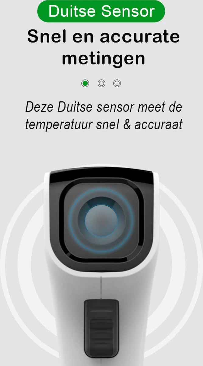 De Infraroodsensor geeft vervolgens de temperatuur weer van het gemeten oppervlak. Salvaro® Infrarood Thermometers geven dit aan met een precisie van 0.1-0.2 graad ten opzichte van het gemeten referentie punt. Mocht uw voorhoofd temperatuur oplopen, dan zal deze thermometer dat zonder enig probleem aangeven. Wij raden aan om de thermometer te gebruik op het voorhoofd op plekken waar veel bloedvaten zitten, bijvoorbeeld de slaap van het hoofd of net boven uw wenkbrauwen.Ieder meet punt heeft onder normale omstandigheden een net andere temperatuur. Zo kan er een verschil zijn tussen een rectale meting en voorhoofd meting.