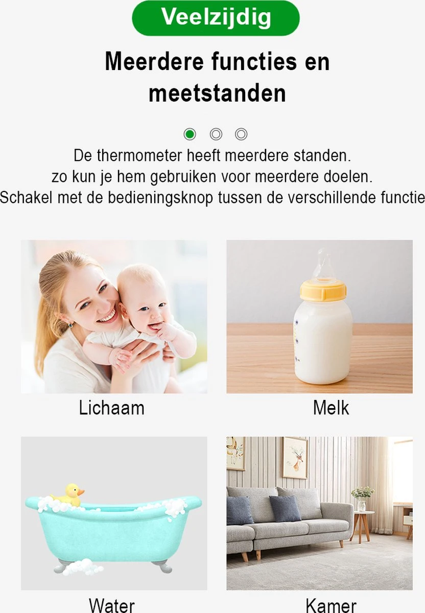 - De thermometer wordt geleverd met een Nederlandse handleiding.