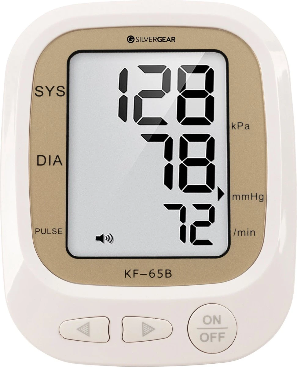 De Silvergear digitale bloeddrukmeter is een handig en compact apparaat om je bloeddruk snel, veilig en accuraat te meten. De ergonomisch ontworpen armband zit prettig om de bovenarm. Hij onthoudt de gegevens van twee gebruikers en kan per gebruiker tot 192 metingen opslaan. Wanneer je het 193e resultaat opslaat, wordt de oudste meting automatisch verwijderd. De Silvergear digitale bloeddrukmeter beschikt over intelligente compressie en een bewegingsdetector en is door z’n afmetingen eenvoudig overal mee naartoe te nemen.