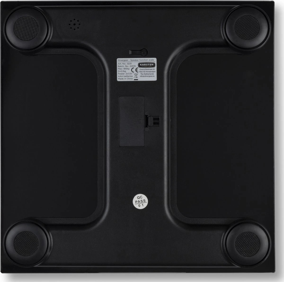 Deze weegschaal van Silvergear kan je gewicht uitspreken in 4 talen: Nederlands, Engels, Frans en Duits.