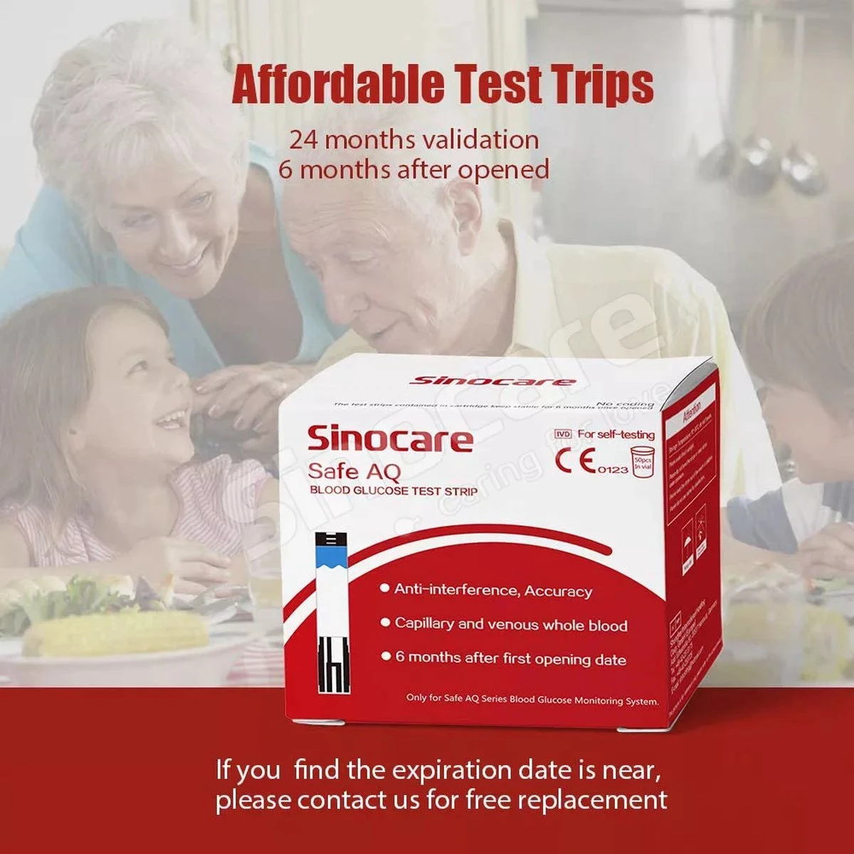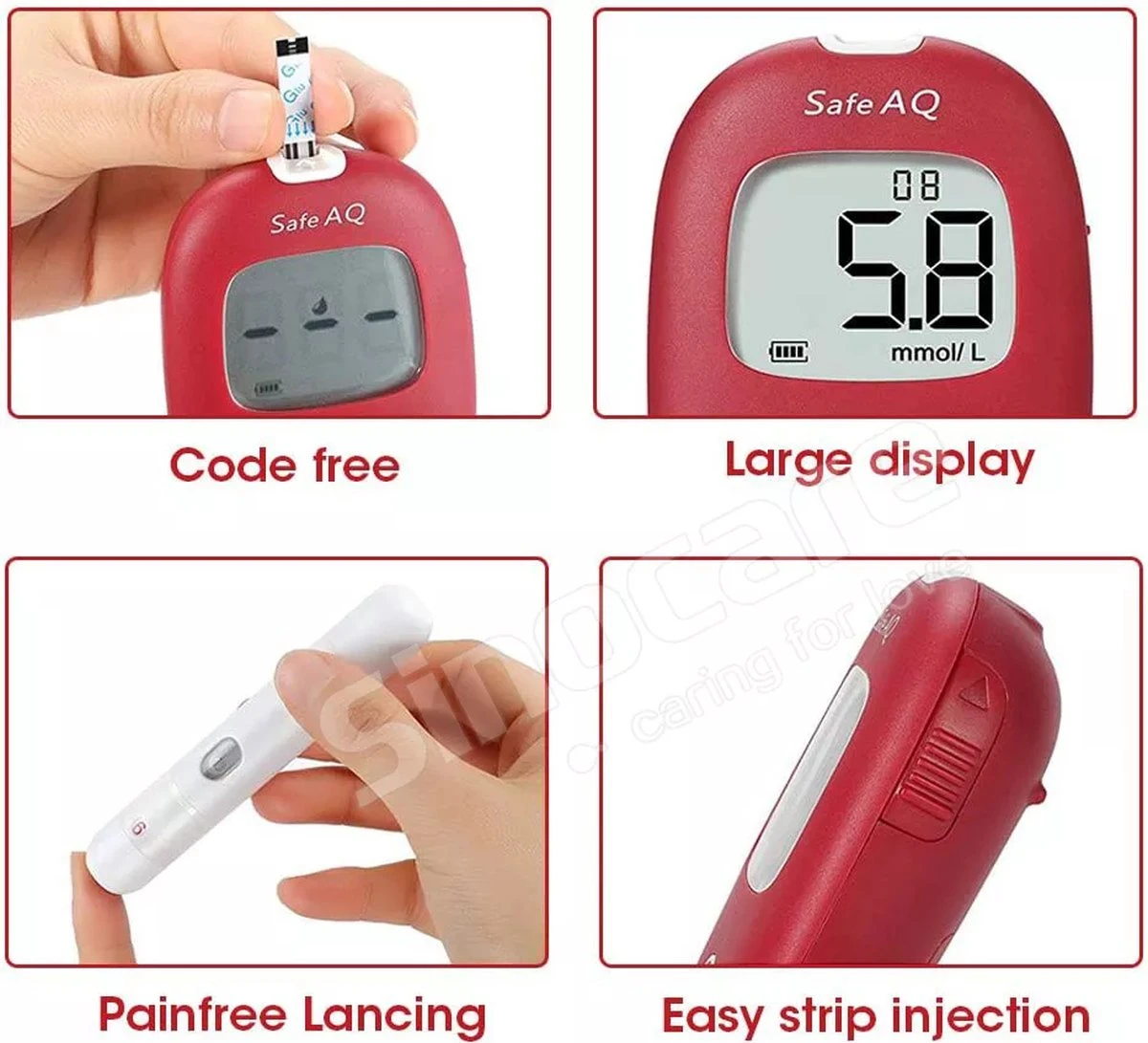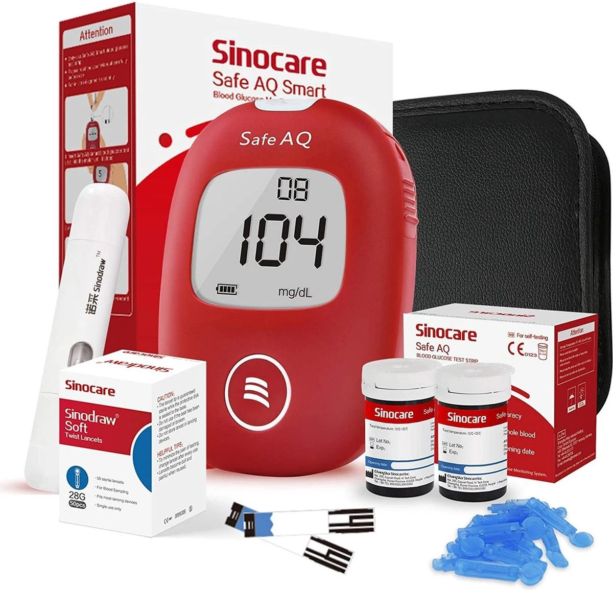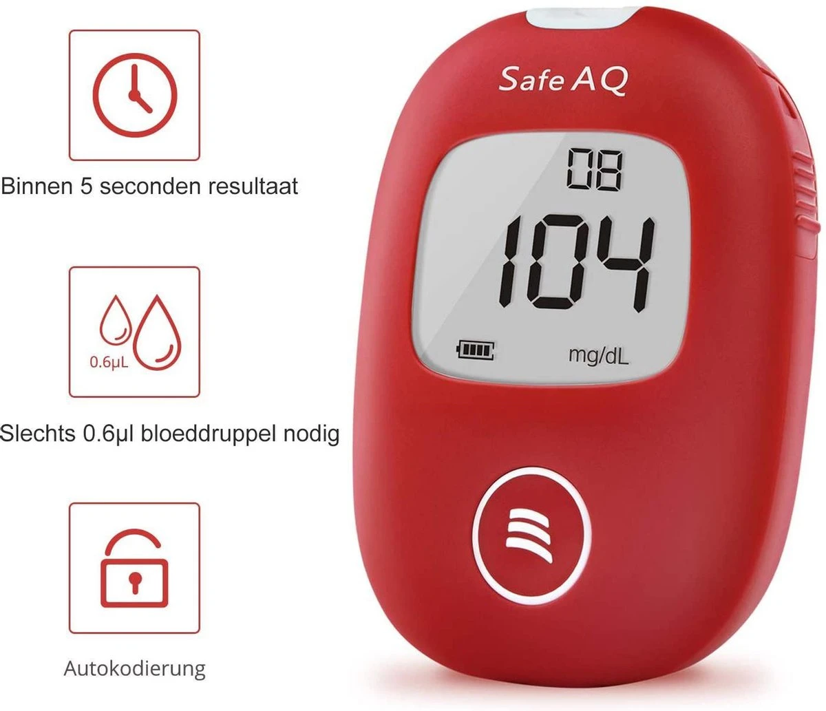 De Bloedglucose testkit van Sinocare bevat de Safe AQ Smart bloedglucosemeter met 100 stuks teststrips en 100 stuks lancetten. Ook bevat het pakket een prikapparaat, gebruikersbox en handleiding. Dit is een complete set om aan al uw behoeften te voldoen bij het meten van de bloedsuikerspiegel. De Safe AQ Smart bloedglucose meter is snel en makkelijk te bedienen. Het scherm is extra groot gemaakt speciaal voor oudere mensen.