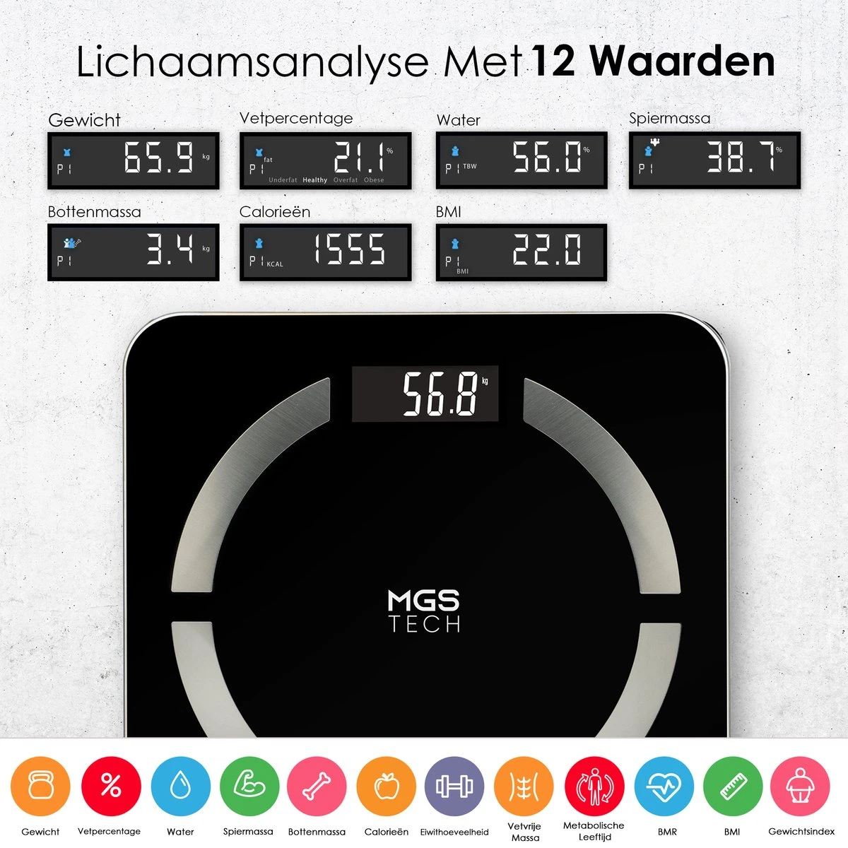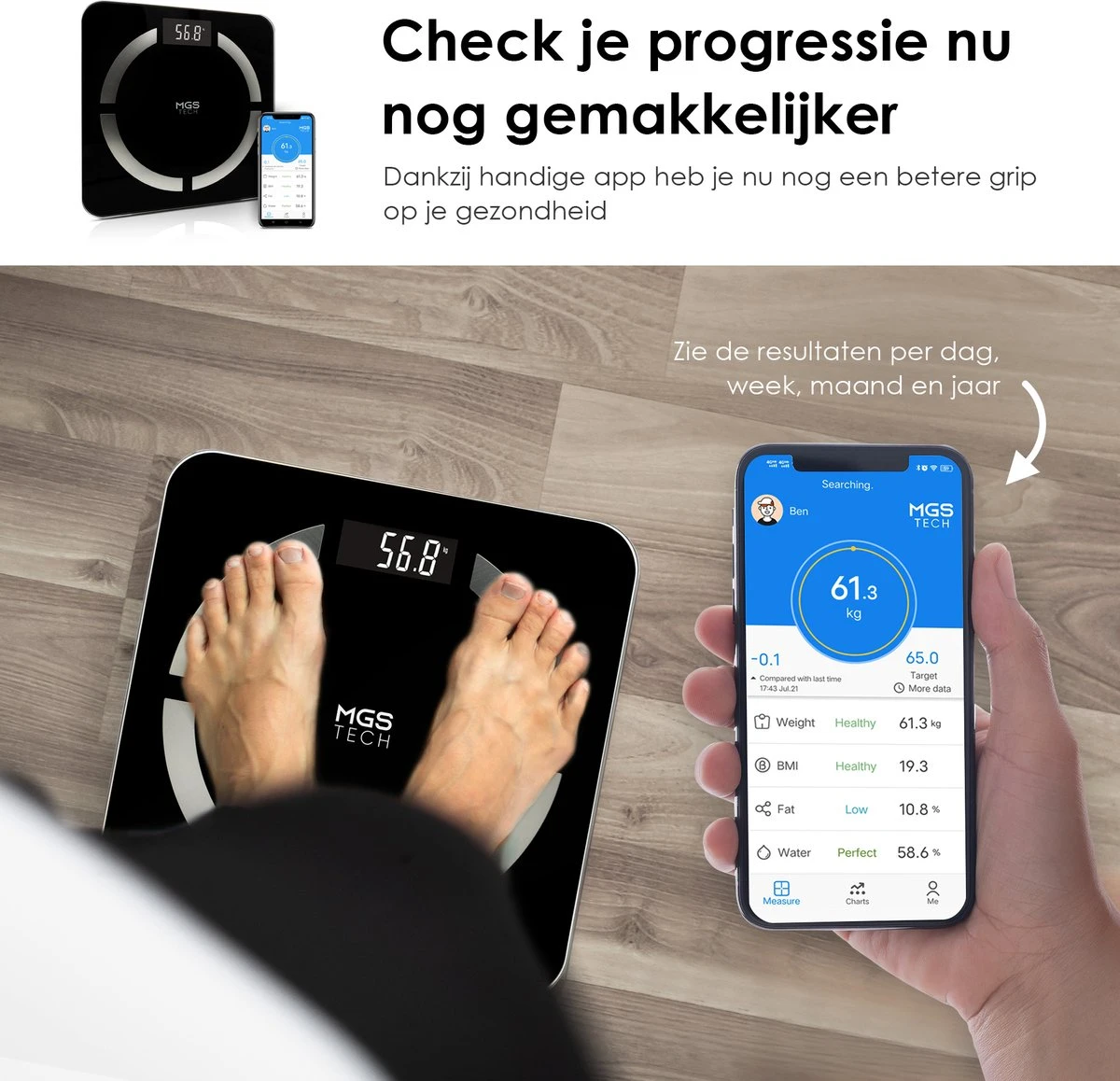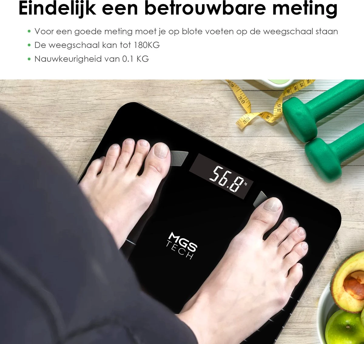 ✔ Nauwkeurige metingen (0.1 kg)