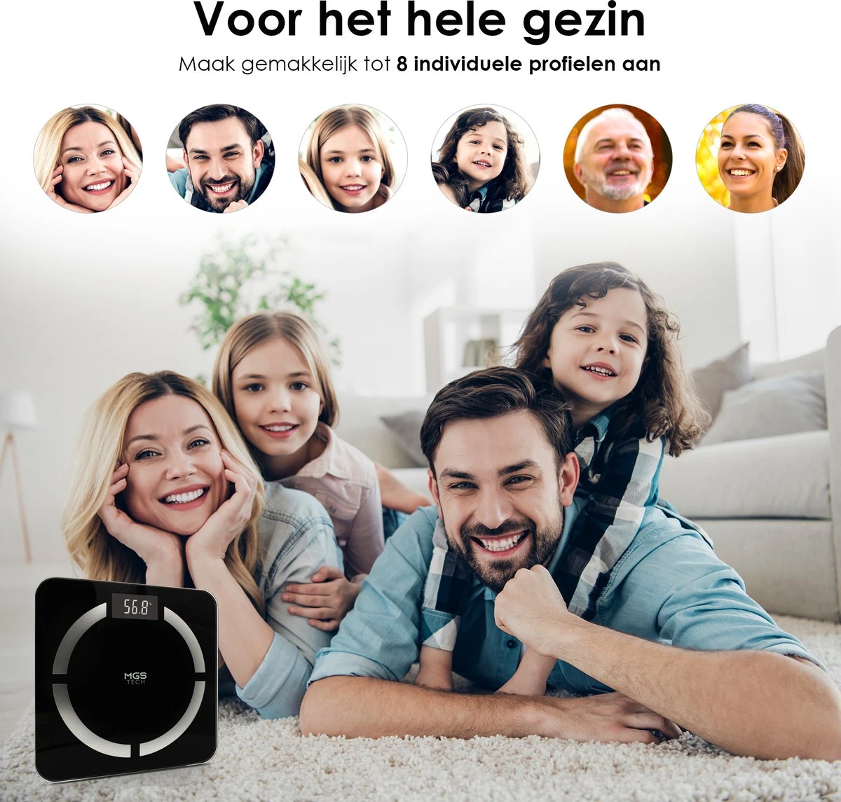 Nadat jij gemakkelijk je persoonlijk profiel aangemaakt hebt herkent de weegschaal de volgende keer je profiel aan de hand van de parameters. De weegschaal houd je progressie dus voor je bij zodat je precies weet of jij je doelen behaald. Er kunnen wel 8 profielen worden aangemaakt waardoor de schaal ideaal is voor het hele gezin!