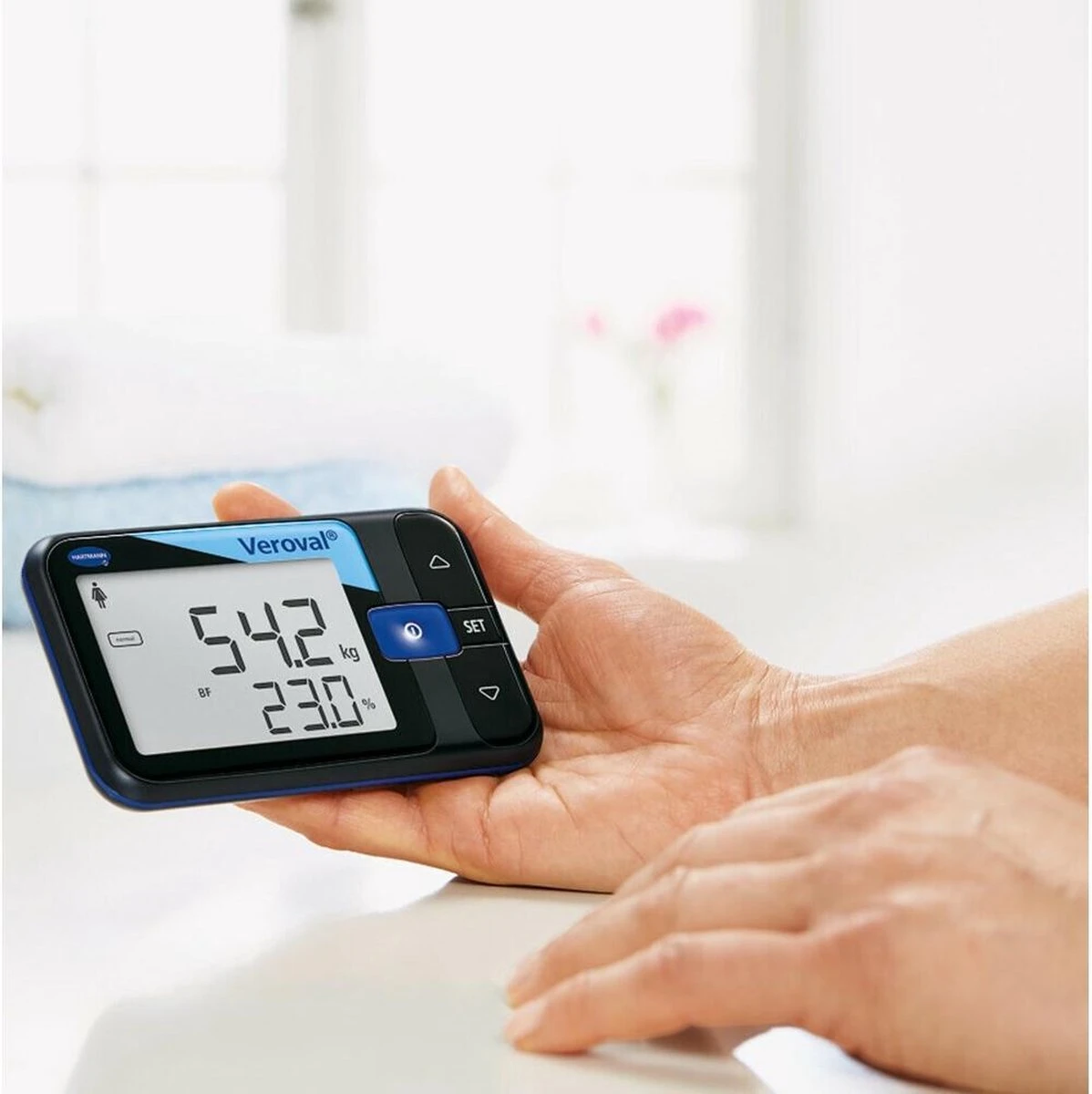 De Veroval® personenweegschaal werkt met het principe van de bio-elektrische impedantieanalyse (BIA). Dankzij deze techniek wordt het mogelijk binnen enkele seconden uw lichaamspercentages te bepalen.