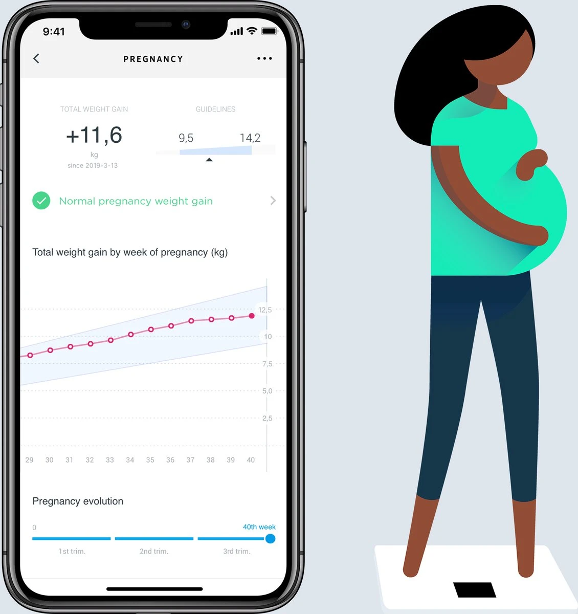 Met de ‘zwangerschaps modes’ kun je gemakkelijk de voorgang van je zwangerschapsgewicht meten