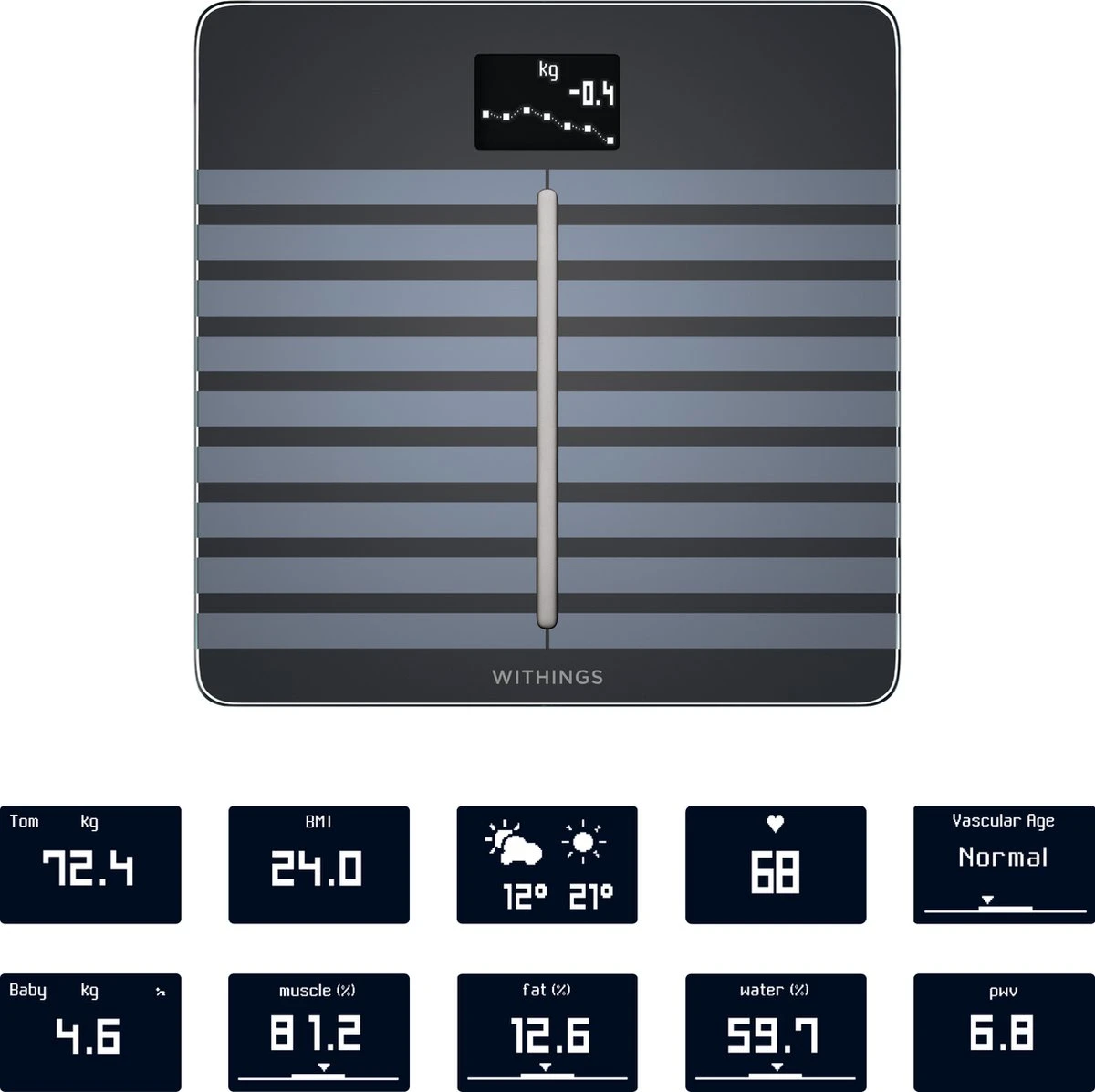 Naast lichaamswaarden deelt de weegschaal ook het weerbericht